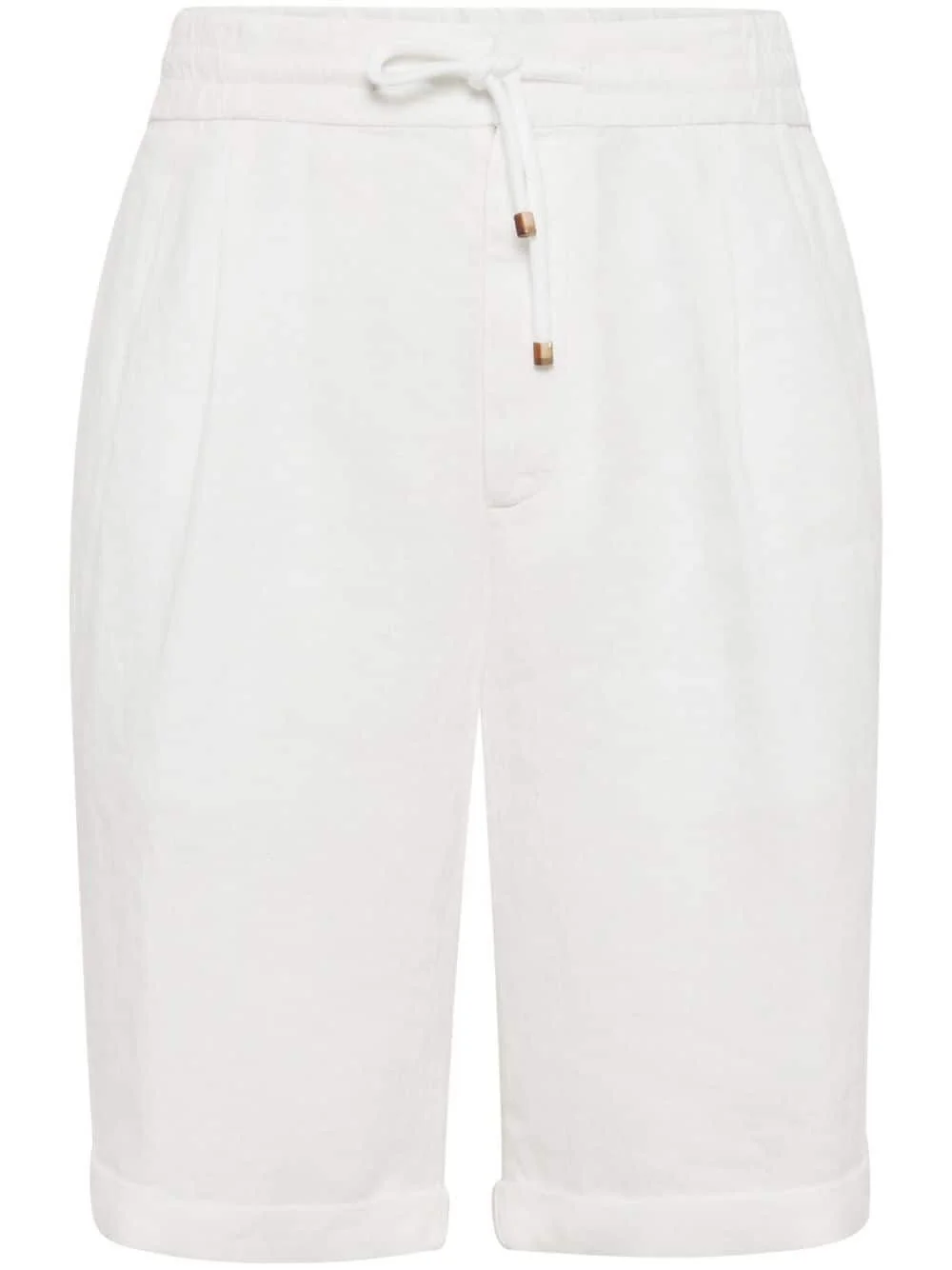 Garment-dyed Bermuda shorts in linen gabardine with drawstring and pleat