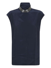 Composition: Silk Made In: Italy|IT Dark blue silk high-neck sleeveless embellished collar PRODUCT INFO: Product code MB993EK704 C7186 BLU FREDDO 100%Se