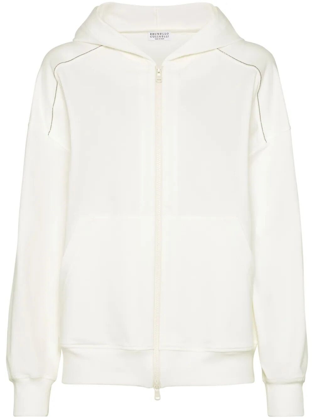 Stretch cotton lightweight French terry hooded sweatshirt with zipper and shiny trims