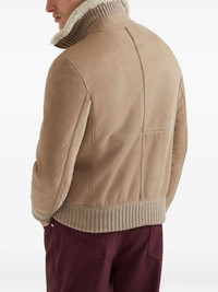 Suede curly shearling bomber jacket with cashmere knit collar
