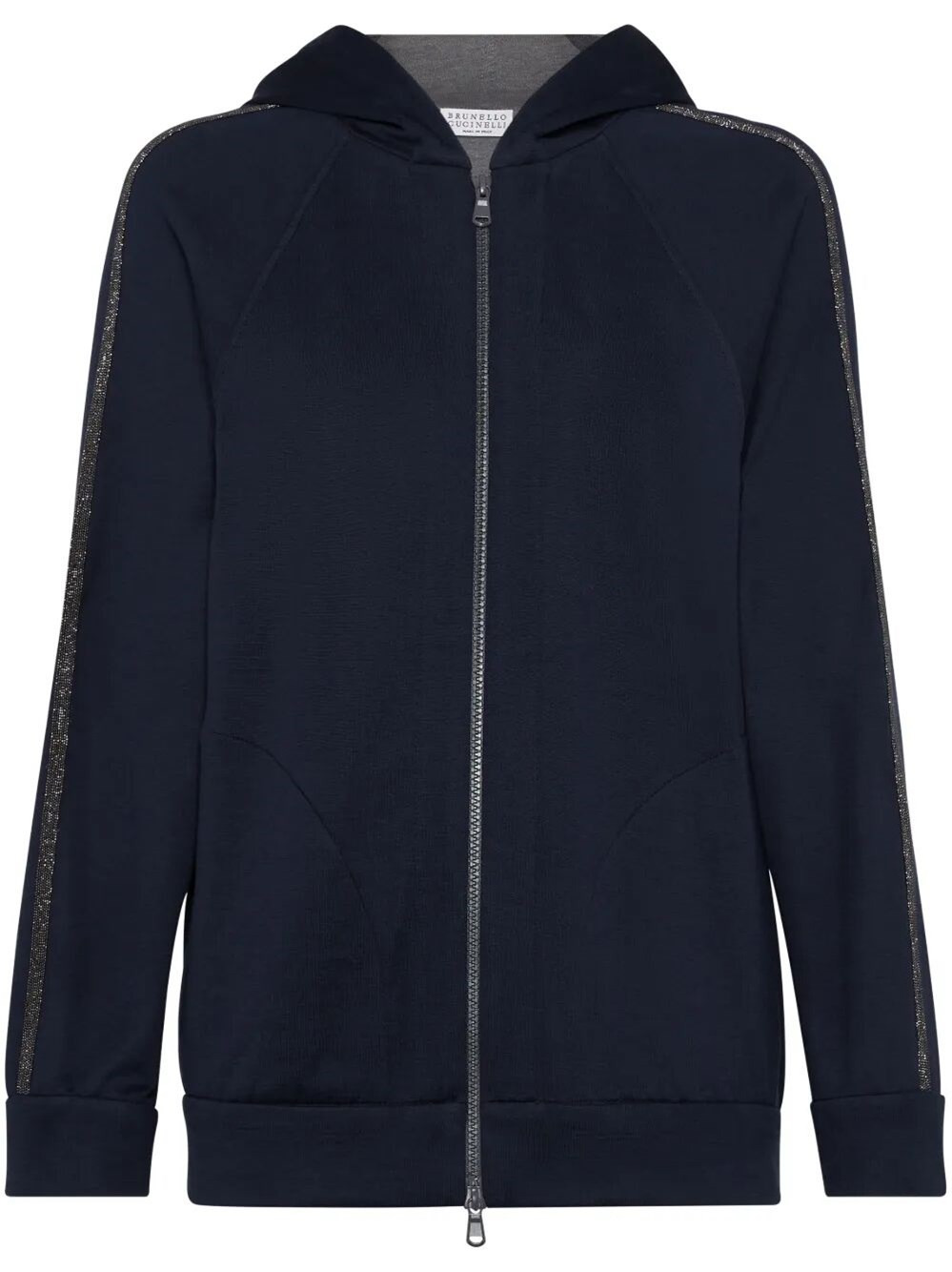 Cotton and silk interlock hooded sweatshirt with precious stripe