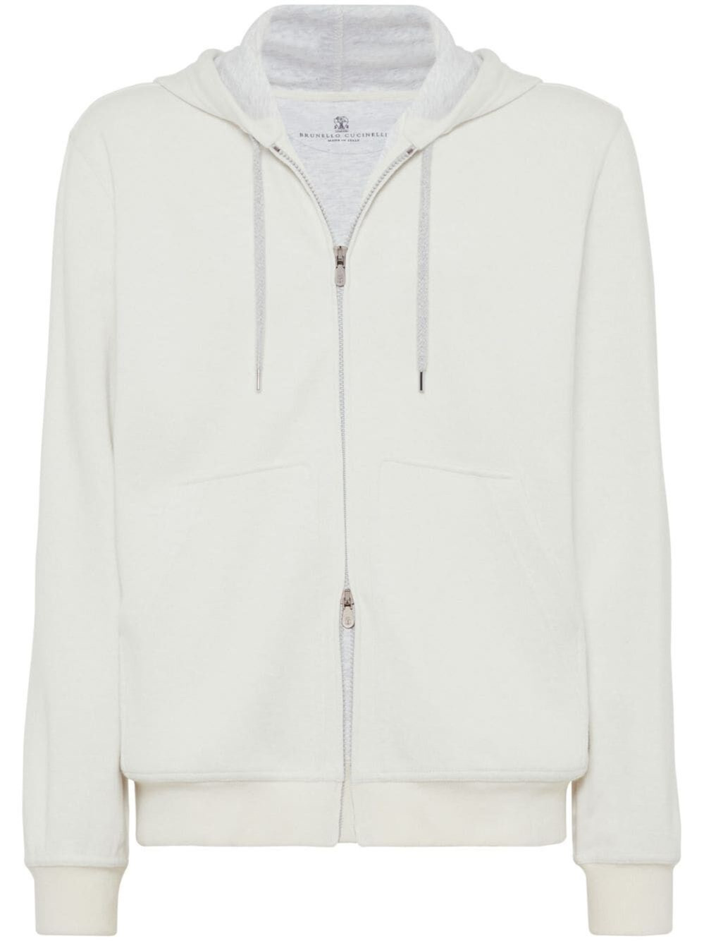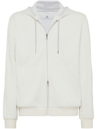 Cashmere and cotton French terry double cloth hooded sweatshirt with zipper