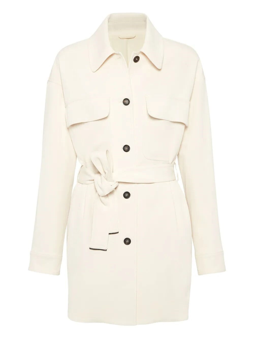 Composition: Viscose Made In: Italy|IT -White -Button closure at the front -Tie closure at the front -Front pockets with flaps -Long sleeves PRODUCT INFO: Product code MG5127451 C145 OFF WHITE 89%Vi 8%Wo 3%Ea
