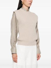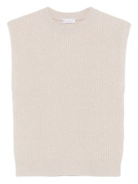 Composition: Wool Made In: Italy|IT -Beige -Ribbed fabric -Circular neckline -Without sleeves -Straight hemline PRODUCT INFO: Product code M16725100 C9504 FEATHER 60%Wv 30%Ws 10%Se