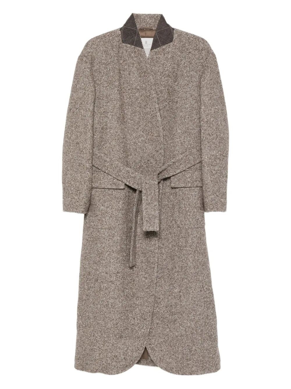 Composition: Wool Made In: Italy|IT Brown tweed fabric, self-tie belt, notched collar, long sleeves, curved hem PRODUCT INFO: Product code MG5319932 C6321 BROWN+GREY 73%Wv 22%Se 5%Ny