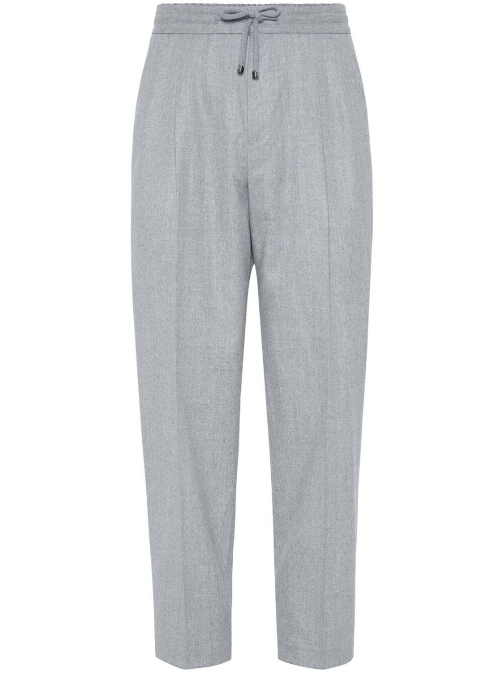Virgin wool flannel leisure fit trousers with drawstring and double pleats