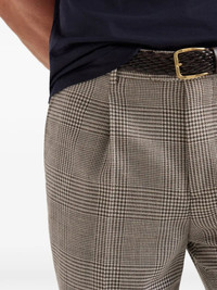 Virgin wool, silk and linen Prince of Wales trousers with pleat