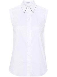 Composition: Cotton Made In: Italy|IT Sleeveless cotton shirt with beaded pointed collar, hidden front button closure and curved hem. PRODUCT INFO: Product code M0091MA616 C159 BIANCO 72%Co 23%Ny 5%Ea