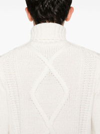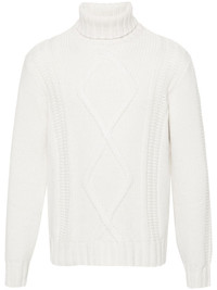 Irish cable turtleneck sweater in cashmere Feather yarn