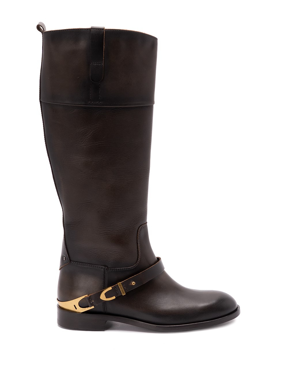 Women's Charlie boots in dark brown leather and clamp on the heel