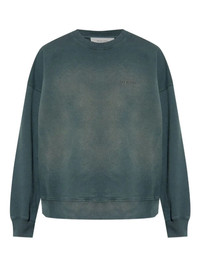 Unisex sweatshirt in worn black cotton with logo embroidery