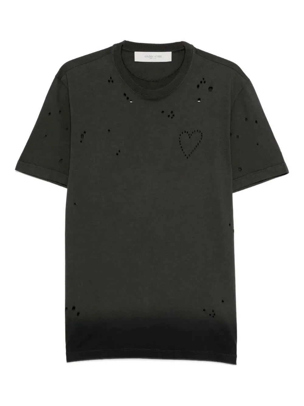 Men’s T-shirt in anthracite cotton jersey with perforated heart