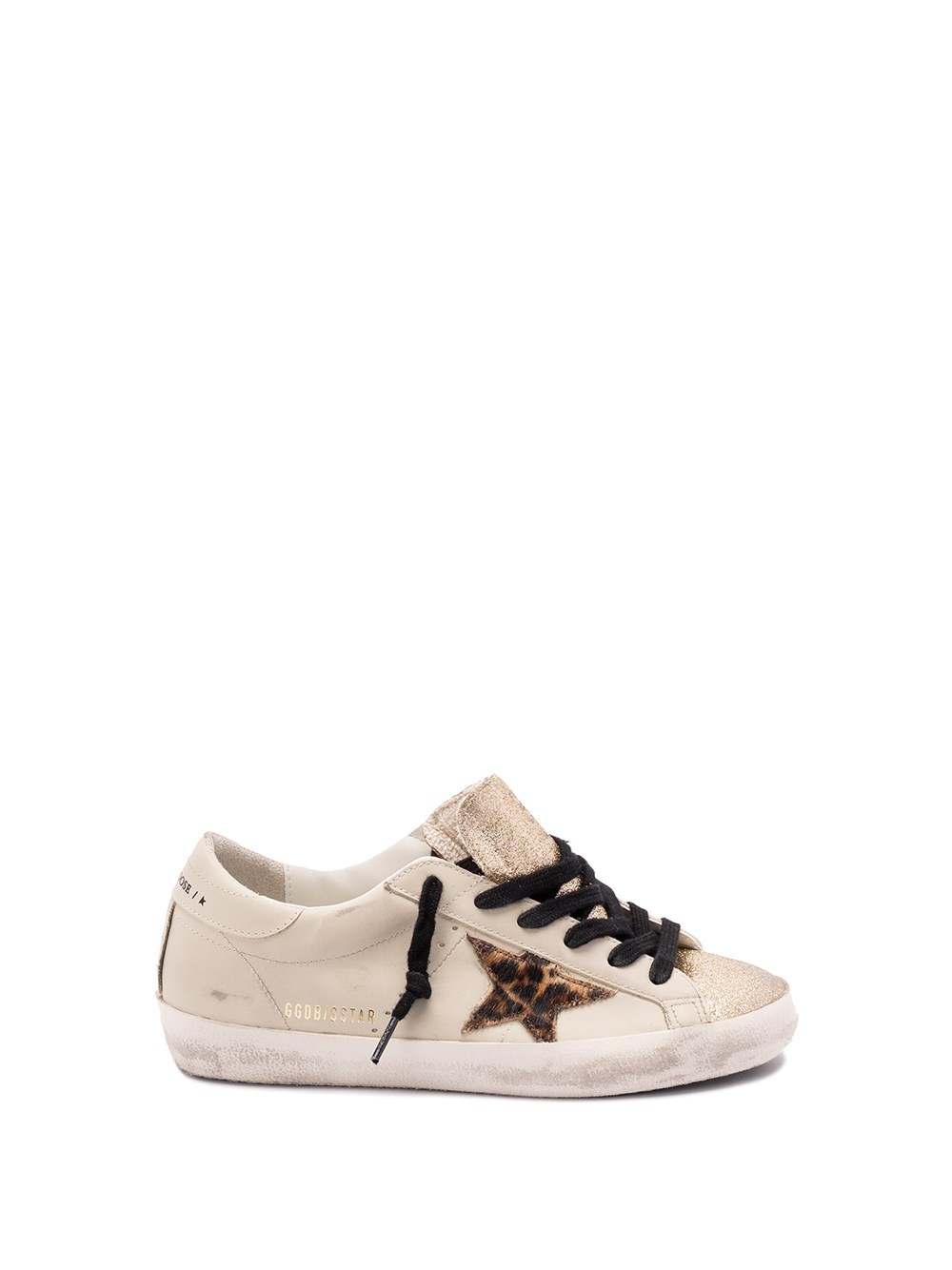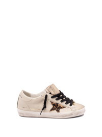 Super-Star distressed glittered leather and calf hair sneakers Off-white