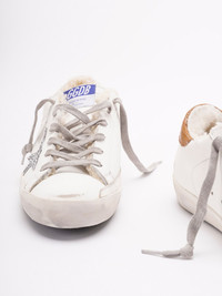 Super-Star sneakers with shearling lining, silver glitter star and lizard-print dove-gray leather he