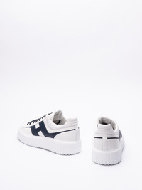 Composition: Sheep Skin Made In: Italy|IT `Round toe with a front lace-up closure, featuring a white leather tongue with logo print and a logo patch on the side, as well as a ridged rubber sole.` PRODUCT INFO: Product code HXM6450FE91QZB 11G1 BIANCO+BLUTUAREG 80%Ovis Aries Aries 20%Bos Taurus