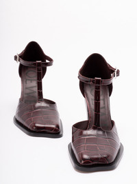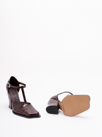 Onda T-bar pump in embossed calfskin