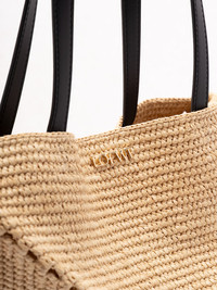 Composition: Raffia Made In: Spain|ES Size: (width 25.5 cm x height 31.5 cm x depth 14 cm) handle 27 cm PRODUCT INFO: Product code A779G50X08 2123 NATURAL 80%Raphia 20%Bos Taurus