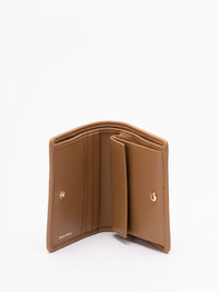 Composition: Lamb Skin Made In: Turkey|TR Decorated with the embossed lettering logo, this small wallet is presented in the brand`s iconic quilted leather, featuring a texture that creates a sophisticated three-dimensional effect. The spacious interior is packed with slots, pockets, and compartments. Quilted finish Snap-button closure Metal lettering logo One bill compartment Three card slots Two internal pockets Internal coin purse with flap Moire lining Size: (width 11 cm x height 8 cm x depth 2 cm) PRODUCT INFO: Product code 5MV204_AFPP F098L CARAMEL 100%Ovis Aries Aries