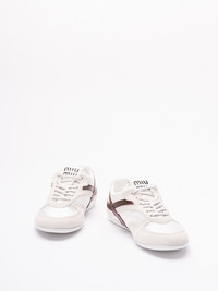 Composition: Polyester Made In: Italy|IT These ultralight sneakers in technical fabric and suede combine casual elements with sporty references. The multicolored stripes and logoed sole accentuate Miu Miu`s sporty yet chic character. Cotton lace closure Leather lining Rubber sole with logo Removable fabric-covered insole Screen-printed logo on the tongue, heel tab, and insole PRODUCT INFO: PROMO CODE NOT APPLICABLE Product code 5E428E_71L_F_A005 F0X97 BIANCO+AMARANTO 100%PL-100%Bos Taurus