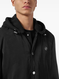 Composition: Made In: Turkey|TR black leather sleeves hooded stud button closure logo patch ribbed waistband PRODUCT INFO: Product code FAECMLB1976PLE010N 02 BLACK