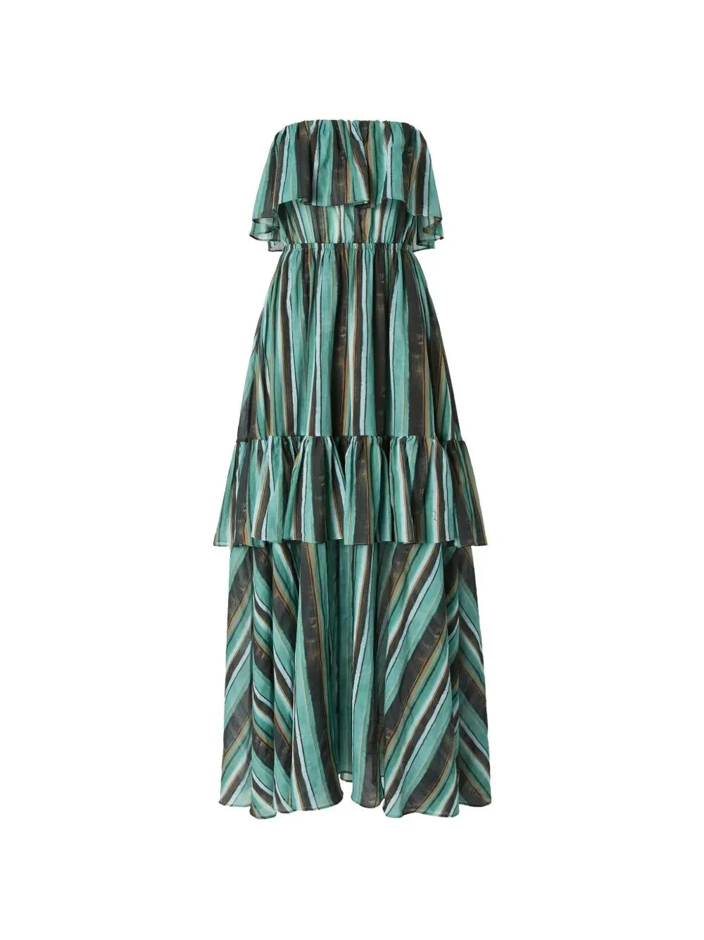 LONG MUSLIN DRESS WITH BRUSHED STRIPED PRINT