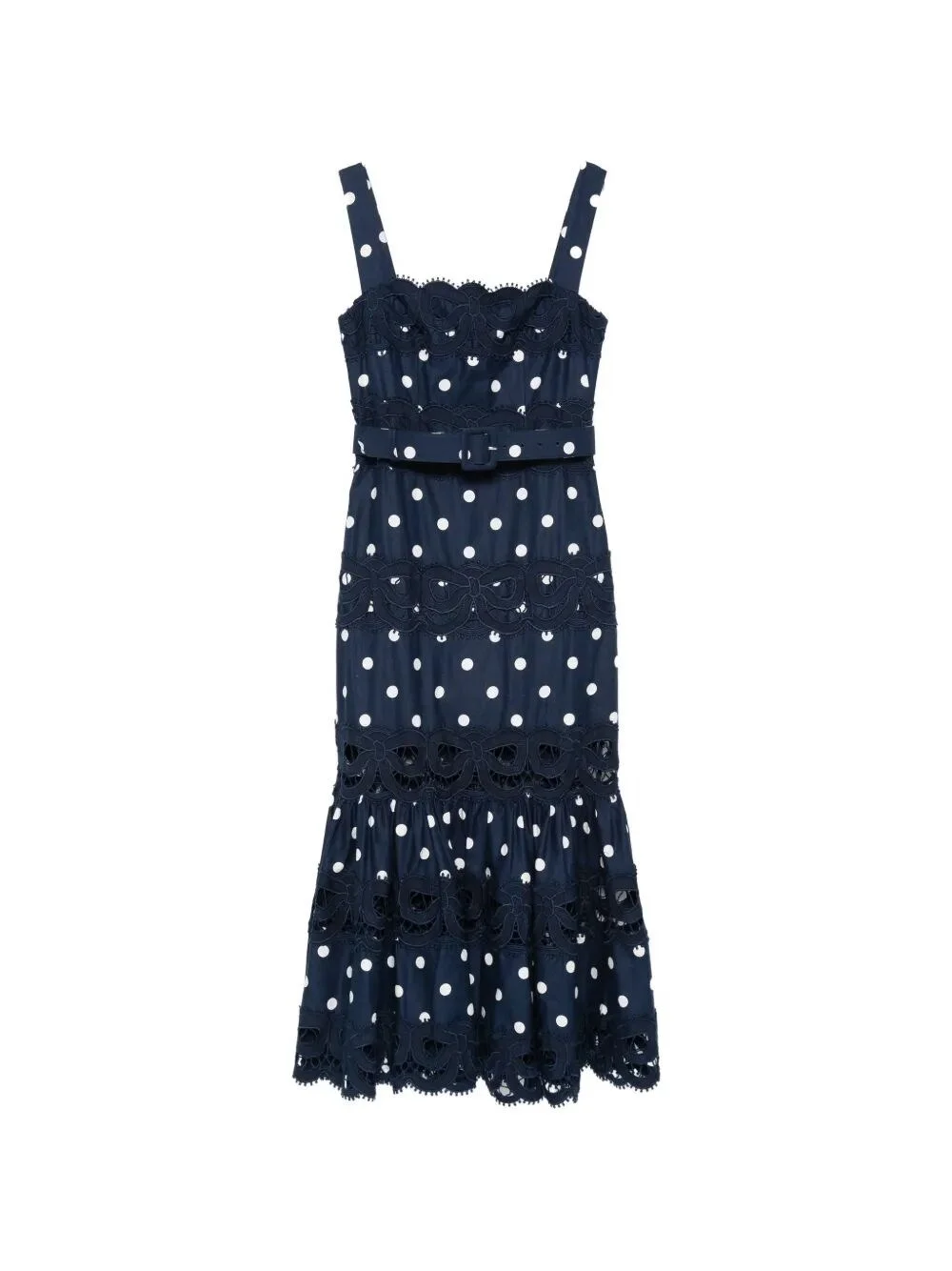 Navy Polka Dot Linen Midi Dress