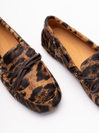 Gommino leather-trimmed leopard-print calf hair boat shoes Leopard print
