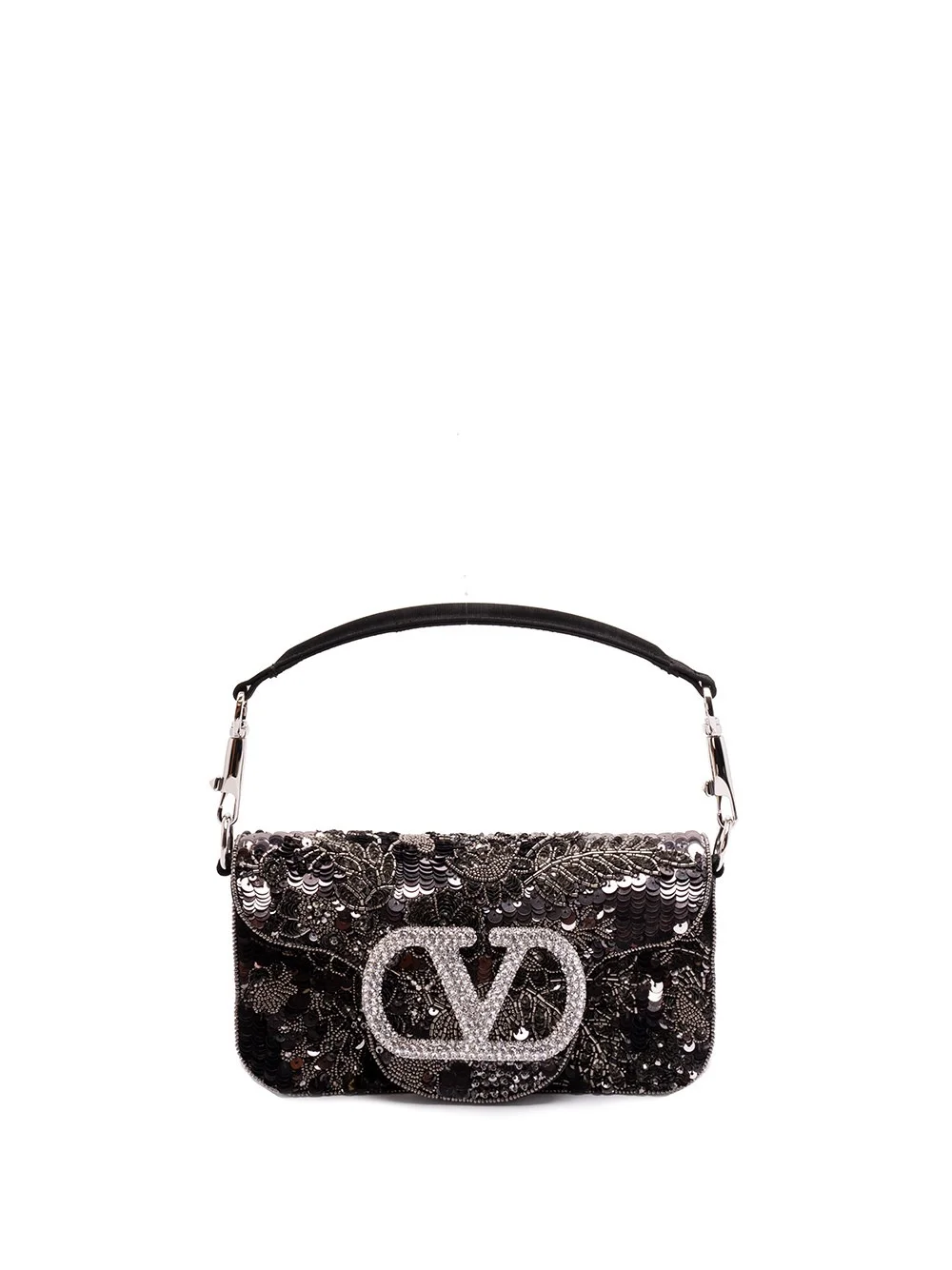 VALENTINO GARAVANI LOCÒ SMALL EMBROIDERED SHOULDER BAG WITH JEWEL LOGO