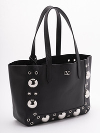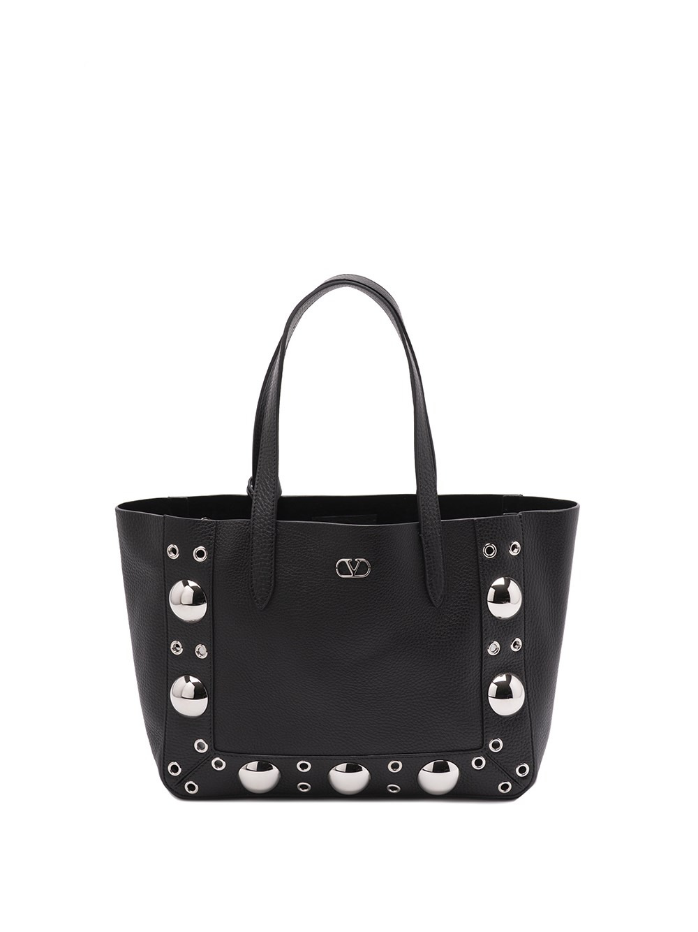 Composition: Calf Leather Made In: Italy|IT Valentino Garavani Nellcote shopping bag in grainy calfskin and trim decorated with ball studs and rivets. The bag can be comfortably worn on the shoulder or by hand thanks to the handles. Palladium-finish hardware, Small metallic detail with VLogo Signat Size: (width 42-32 cm x height 10 cm x depth 22 cm) PRODUCT INFO: Product code 7W2B0R88MJL 0NO NERO 100%Bos Taurus