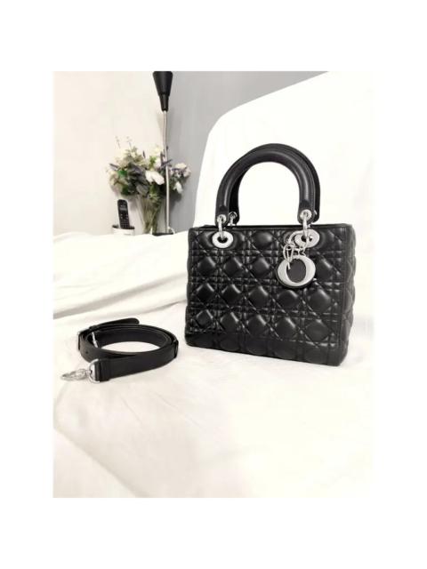 Medium Lady Dior Bag in Black Lambskin and Silver Hardware