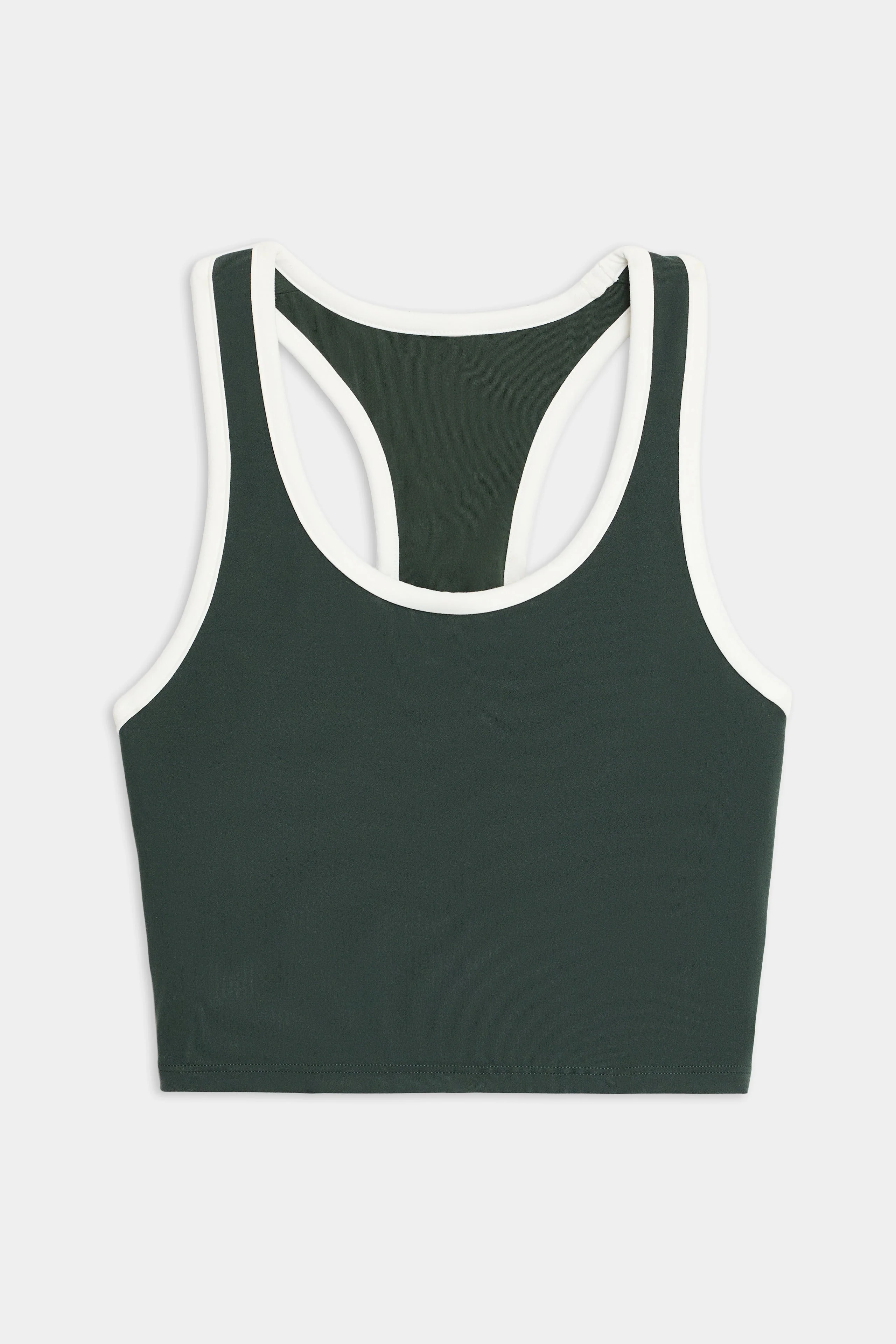 Sophisticated crisp white trim provides a chic touch to this cropped scoop-neck. The super soft ultra luxe Airweight performance fabric gives you superior second skin comfort and freedom. BEST FOR: hot yoga, barre, pilates. Model is H: 5’10” Bust 32 Waist 23.5 Hips 34.5” and wearing a size small THE FIT AIRWEIGHT: 81% nylon/ 19% spandex Moisture-wicking & Quick-dry technology.
