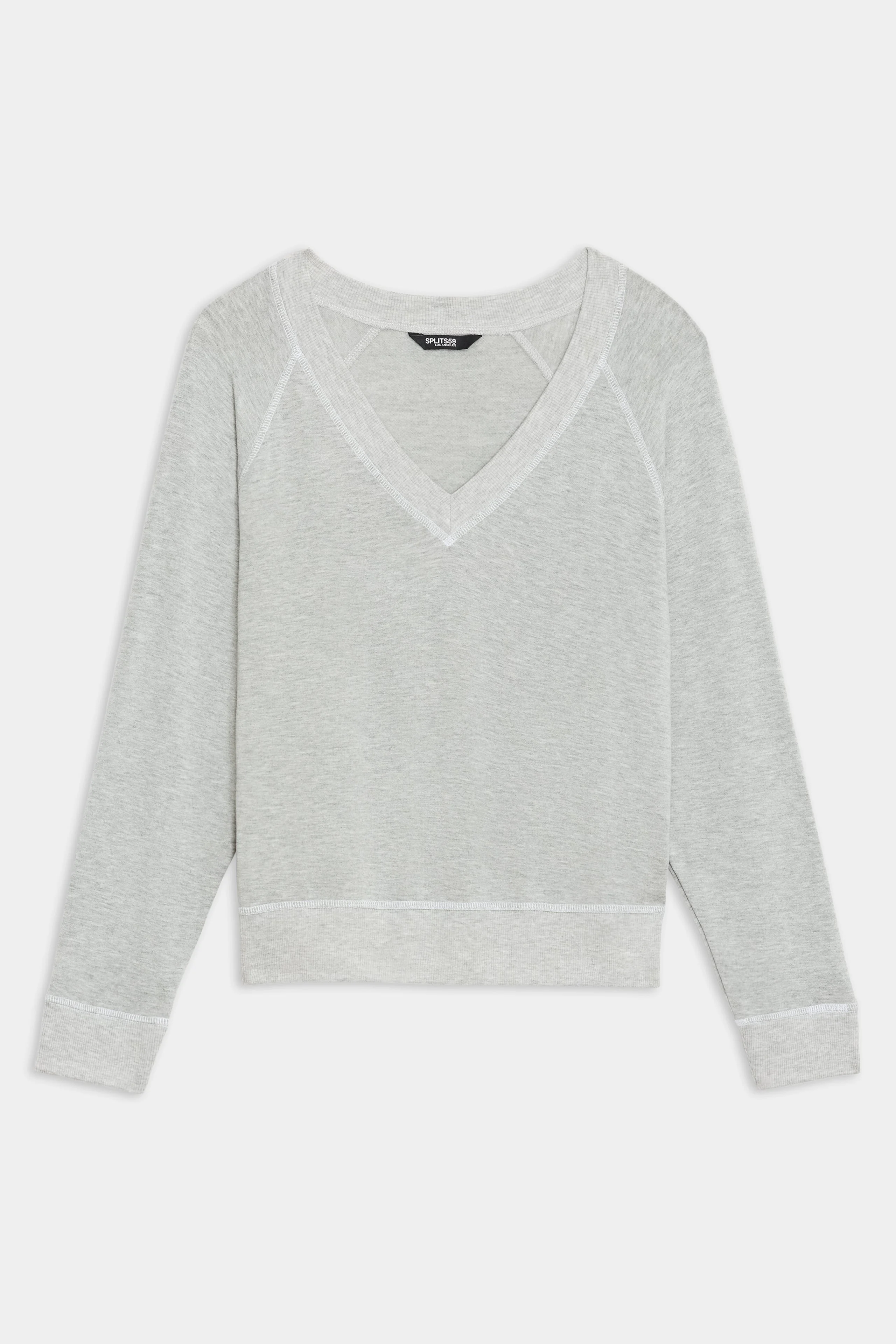 Our classic fleece sweatshirt is reimagined with a chic v-neck. This pullover is so soft, versatile and ultra-flattering. The ultra luxe fleece body is finished with dropped sleeves, sleeve cuffs and a ribbed hem. MADE IN LOS ANGELES to minimize our carbon footprint. BEST FOR: Warming up and cooling down after running, yoga, CrossFit, barre, Pilates, cycling and spin class. Model is H: 5’10” Bust 32 Waist 23.5 Hips 34.5” and wearing a size small THE FIT LUXE FLEECE: 95% Modal/ 5% spandex The finest TENCEL™ Modal fibers are produced with Micro technology for a softer touch. And made with at least 50% less carbon emissions and water consumption. Ultra luxe fleece
