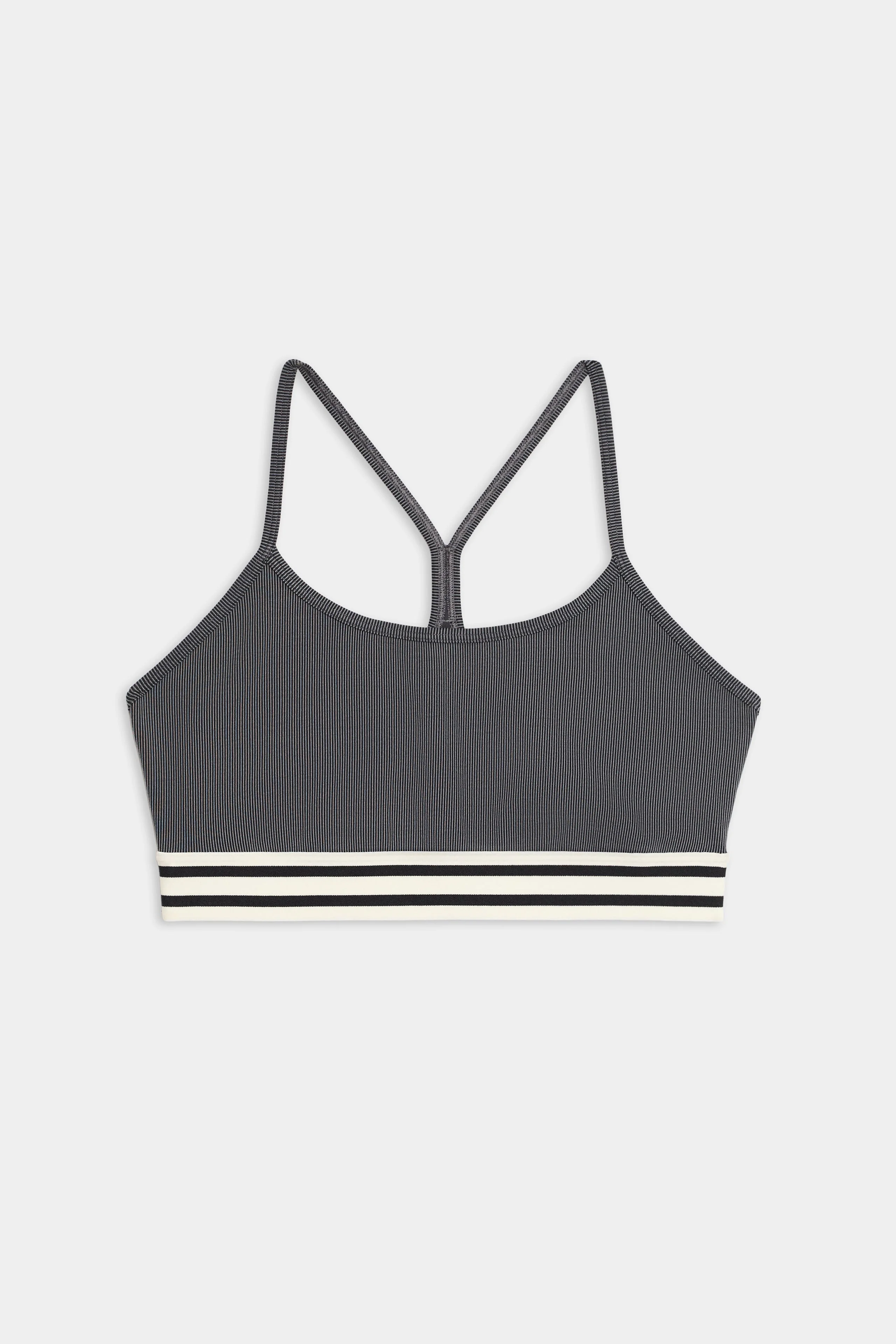 This active rib bra is supportive and chic. The active rib fabric makes it perfect for an intense workout, but comfortable enough to wear throughout the day. BEST FOR: Running, yoga, CrossFit, barre, Pilates, spin class, cycling and gym workouts. Model is H: 5’10” Bust 32 Waist 23.5 Hips 34.5” and wearing a size small THE FIT 84% polyester/ 16% spandex rib fabric