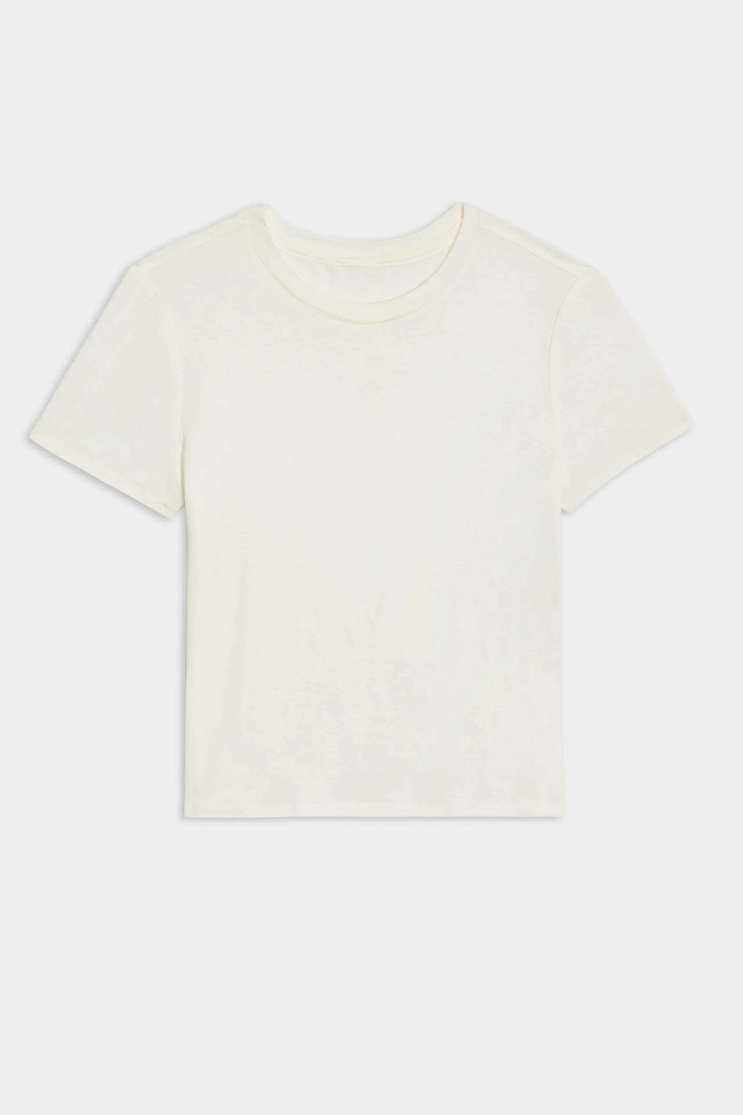 Our short sleeve jersey tee is great on its own or as a must-have layer. Raglan sleeves and relaxed fit. Pair it with cargo pants, sweats or jeans. BEST FOR: Running, CrossFit, barre, Pilates, spin class, cycling and gym workouts THE FIT JERSEY: 95% viscose/ 5% elastane Breathable light weight natural jersey