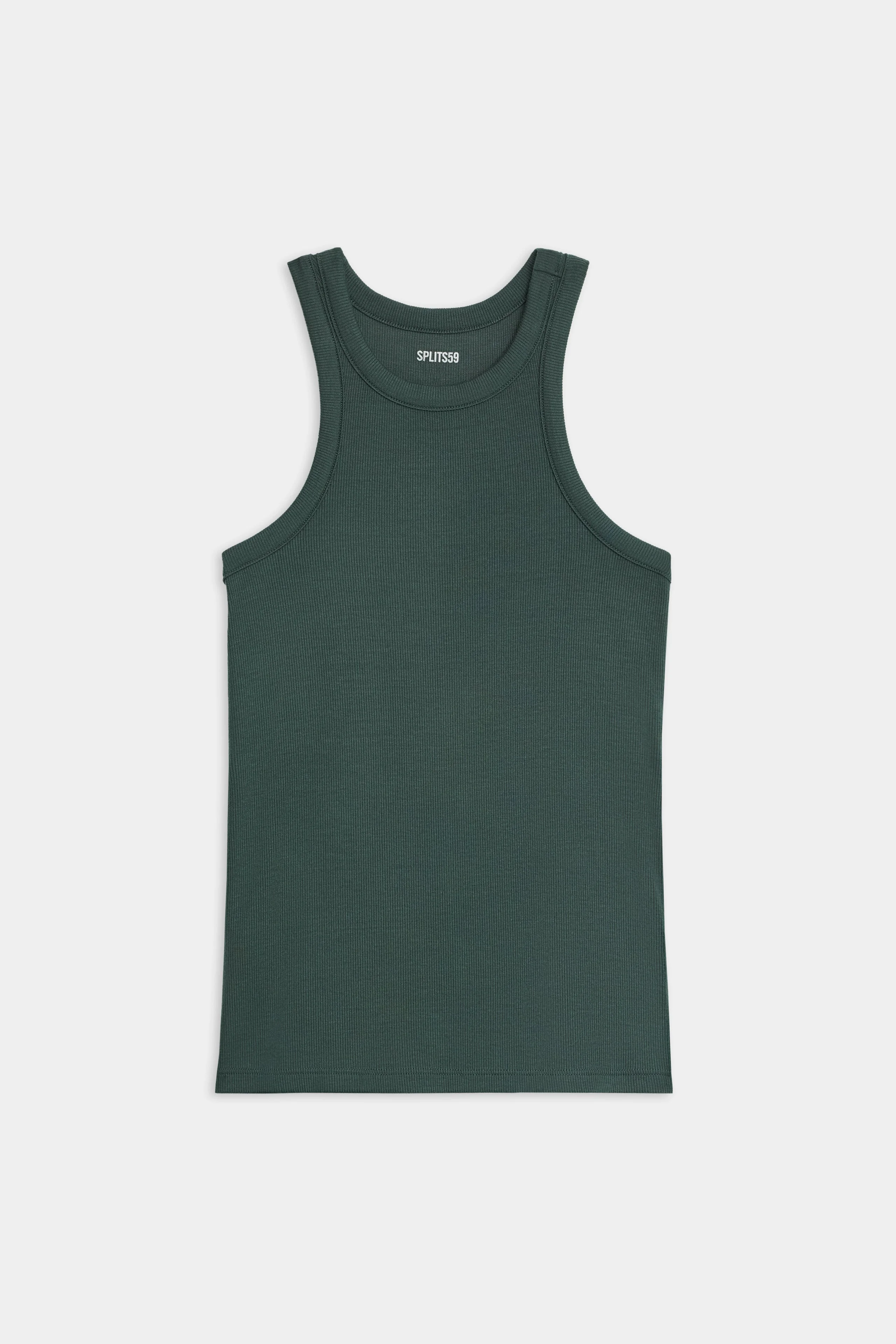 A high racer front and back neckline, with a full length add a bit of sophistication to our classic tank. Super soft baby rib fabric to hug your body and layer effortlessly. BEST FOR: running, yoga, CrossFit, barre, Pilates, spin class, cycling and gym workouts. Model is H: 5’10” Bust 32 Waist 23.5 Hips 34.5” and wearing a size small THE FIT RIBBED JERSEY: 95% Modal/ 5% spandex The finest TENCEL™ Modal fibers are produced with Micro technology for a softer touch. And made with at least 50% less carbon emissions and water consumption. 2x1 extra soft baby rib