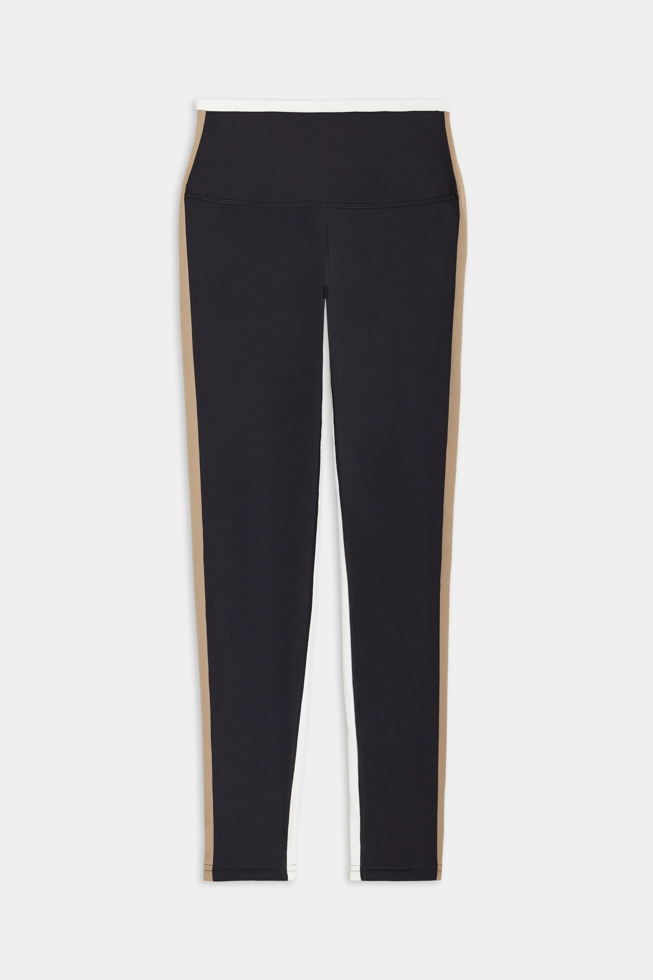 Alternating pops of white and latte color along the waist, inner and outer leg inspire a sense of spontaneity in this dynamic run tight. Gently compressive Rigor fabric and high waist for support and shaping. BEST FOR: Running, yoga, CrossFit, barre, Pilates, spin class and gym workouts. THE FIT RIGOR: 62% Nylon/38% Spandex Moisture wicking & Quick-dry technology.
