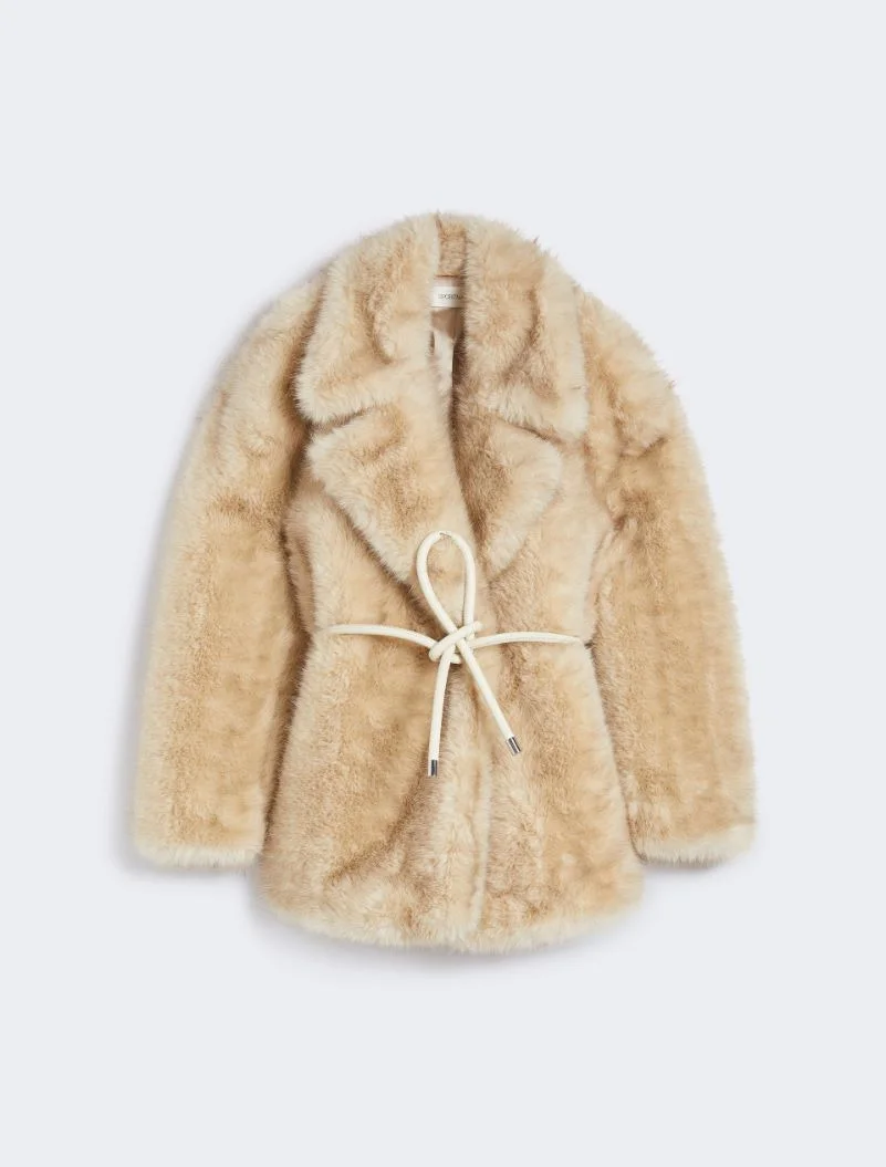 Soft jacket in furry-effect fabric, with wide lapels and matching belt to cinch the waist. - Furry effect fabric jacket - Regular fit - Wide lapel neckline - Tubular belt in coated fabric, with metal ends - Matching tone satin lining - Wide fit Composition and Care Coat in jersey jersey fabric 100% polyester; lining 95% polyester, 5% elastane; - exclusive of accessories. Belt jersey fabric 100% polyester; layer polyurethanic resin. Coat in jersey: do not wash; do not bleach; do not tumble dry; do not iron; professionally dry clean perchloroethylene - mild process; do not wet clean.; Before cleaning the style remove the accessories.; Remove the belt before washing. Belt: do not wash; do not bleach; do not tumble dry; do not iron; do not dry clean; do not wet clean. Distributed by Max Mara S.r.l., registered office in Reggio Emilia (Italy), Via Giulia Maramotti 4, 42124