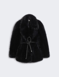 Soft jacket in furry-effect fabric, with wide lapels and matching belt to cinch the waist. - Furry effect fabric jacket - Regular fit - Wide lapel neckline - Tubular belt in coated fabric, with metal ends - Matching tone satin lining - Wide fit Composition and Care Coat in jersey jersey fabric 100% polyester; lining 95% polyester, 5% elastane; - exclusive of accessories. Belt jersey fabric 100% polyester; layer polyurethanic resin. Coat in jersey: do not wash; do not bleach; do not tumble dry; do not iron; professionally dry clean perchloroethylene - mild process; do not wet clean.; Before cleaning the style remove the accessories.; Remove the belt before washing. Belt: do not wash; do not bleach; do not tumble dry; do not iron; do not dry clean; do not wet clean. Distributed by Max Mara S.r.l., registered office in Reggio Emilia (Italy), Via Giulia Maramotti 4, 42124