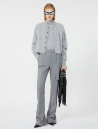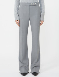 Cigarette trousers in soft stretch wool, with zipped slit at the ankle that accentuates the leg’s slender line. The long flap at the waist falls freely at the front. - Natural stretch pure wool trousers - Cigarette fit with slightly low waist - Closure with custom snap buttons and long flap with belt effect - Customised waistband interior - Trouser crease on front and back with zipped ankle slit at the back - Slant side pockets and back welt pockets - Regular fit Composition and Care 100% virgin wool. Do not wash; do not bleach; do not tumble dry; cool iron; professionally dry clean perchloroethylene - mild process; do not wet clean. Distributed by Max Mara S.r.l., registered office in Reggio Emilia (Italy), Via Giulia Maramotti 4, 42124