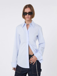 Semi-fitted shirt in pure cotton poplin, featuring a concealed button placket and long back darts for a defined silhouette. The double-height cuffs add a bold touch. - Shirt in pure cotton poplin - Shirt collar and concealed button placket - Back yoke and deep darts with visible topstitchin - Double-height cuffs - Regular fit Composition and Care 100% cotton. Machine wash cold delicate cycle; do not bleach; do not tumble dry; line drying in the shade; cool iron; professionally dry clean perchloroethylene - mild process.; do not iron the buttons. Distributed by Max Mara S.r.l., registered office in Reggio Emilia (Italy), Via Giulia Maramotti 4, 42124