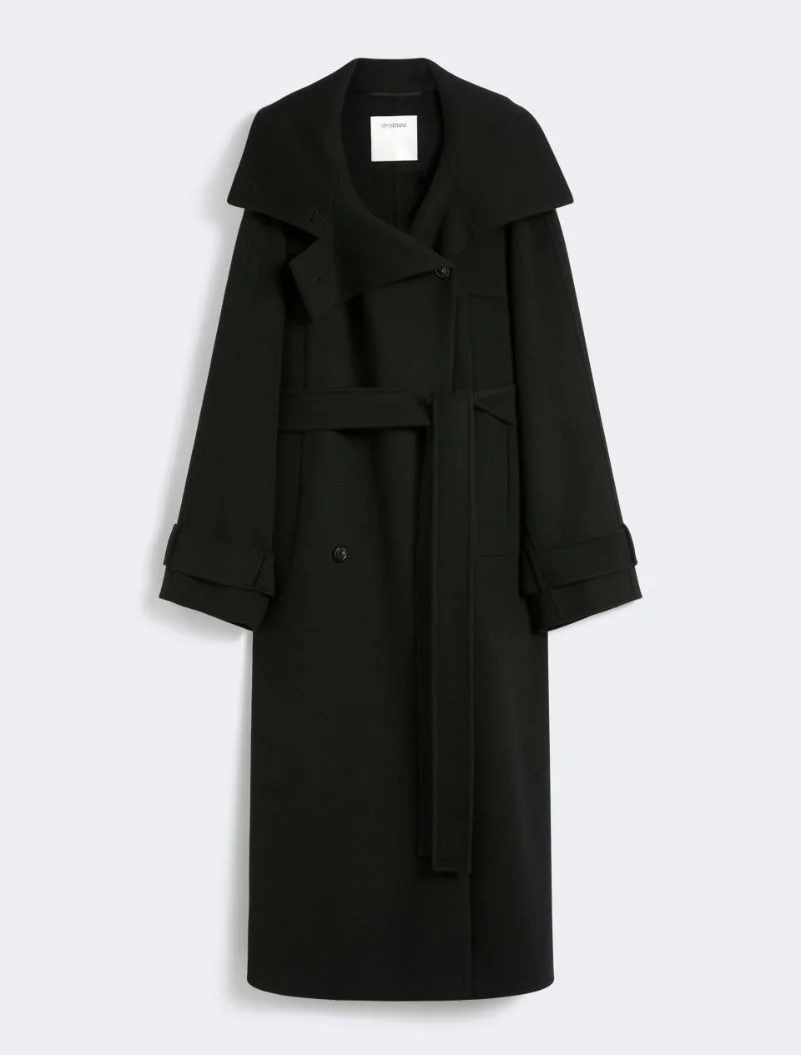 Warm and enveloping trench coat in double-faced pure wool fabric. The design, complete with a side-set button fastening, is full of details, such as a raised neck, statement welt pockets along the sides and a detached rear yoke. - Double-faced pure wool trench coat - Loose fit - Raised neck - Button fastening and belt - Shoulder epaulettes and cuff tabs - Wide fit Composition and Care Fabric 100% virgin wool; - except joining thread. Do not wash; do not bleach; do not tumble dry; cool iron; professionally dry clean perchloroethylene - mild process; do not wet clean.; put this item into a string bag before washing it.; wash the garment while it is fastened.; turn the articles inside out before washing. Distributed by Max Mara S.r.l., registered office in Reggio Emilia (Italy), Via Giulia Maramotti 4, 42124