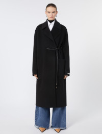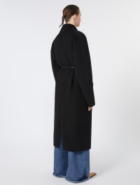 Long coat with a dressing gown construction, in a soft double wool The construction features an asymmetrical note on the right side, where the belt passes internally. - Pure wool double drap wrap coat - Wide lapel collar - Closure with tubular belt and asymmetrical detail on the right - Large side patch pockets - Wide fit Composition and Care Coat fabric 100% virgin wool; - except joining thread; with belt in polyester with polyurethane coating. Coat: do not wash; do not bleach; do not tumble dry; cool iron; professionally dry clean perchloroethylene - mild process; do not wet clean. Belt: do not wash; do not bleach; do not tumble dry; do not iron; do not dry clean; do not wet clean. Distributed by Max Mara S.r.l., registered office in Reggio Emilia (Italy), Via Giulia Maramotti 4, 42124