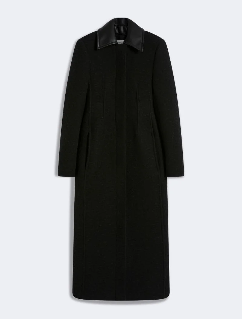 Feminine lines and a defined silhouette distinguish this double-sided fabric coat in a nubby wool blend, for a rich, textured effect. The focal points are the neck, the structured shoulders and the fitted waist. - Double-sided fabric coat in a washed-effect nubby wool blend - Fitted - Coated jersey shirt collar with hidden fastening - Sleeves with rounded cut and visible stitching - Lined - Regular fit Composition and Care Fabric 85% virgin wool, 15% polyamide; - except joining thread; lining 50% acetate, 50% viscose. Do not wash; do not bleach; do not tumble dry; cool iron; professionally dry clean perchloroethylene - mild process; do not wet clean.; wash the garment while it is fastened.; iron with a cloth between. Distributed by Max Mara S.r.l., registered office in Reggio Emilia (Italy), Via Giulia Maramotti 4, 42124
