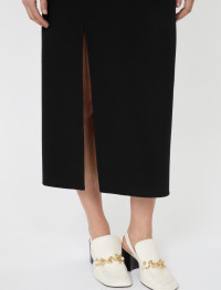 Midi skirt with a minimalist line, edge-to-edge slit on the front and small darts that define the waistline. Made in soft double-face pure wool. - Skirt in double-sided pure virgin wool - Back opening with zip - Regular fit at the waist - Edge-to-edge slit at the front - Regular fit Composition and Care Fabric 100% virgin wool; - except joining thread. Do not wash; do not bleach; do not tumble dry; cool iron; professionally dry clean perchloroethylene - mild process; do not wet clean.; protect zipper tongue and slide before cleaning.; turn the articles inside out before washing. Distributed by Max Mara S.r.l., registered office in Reggio Emilia (Italy), Via Giulia Maramotti 4, 42124