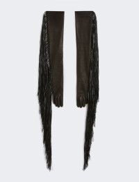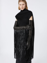 Long gloves in soft, lined nappa leather, decorated with hanging maxi fringes. - Nappa leather gloves with lining - Long fringes in coated cotton - Fringe length: 60 cm - Fringe width: 3 cm Composition and Care Style in lamb leather; lining 100% polyamide; with details in cotton with polyurethane coating. Do not wash; do not bleach; do not tumble dry; do not iron; do not dry clean; do not wet clean.; do not wash or dry clean by fabric methods. clean only by leather and fur specialists. Distributed by Max Mara S.r.l., registered office in Reggio Emilia (Italy), Via Giulia Maramotti 4, 42124