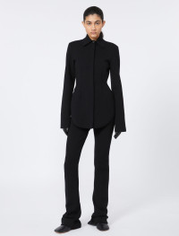 New slim-fit trousers in soft stretch viscose. The slightly low waist and zip at the hem create a feminine style with an elongated line thanks to the trouser creases on the leg. - Stretch viscose trousers - Fitted - Internal button and zip fastening - Slightly low waist - Concealed zip at the hem - Regular fit Composition and Care 72% viscose, 28% polyester. Hand wash cold (40°c max); do not bleach; do not tumble dry; flat drying in the shade; cool iron; professionally dry clean perchloroethylene - mild process; do not wet clean.; iron with a cloth between.; using neutral detergent. Distributed by Max Mara S.r.l., registered office in Reggio Emilia (Italy), Via Giulia Maramotti 4, 42124