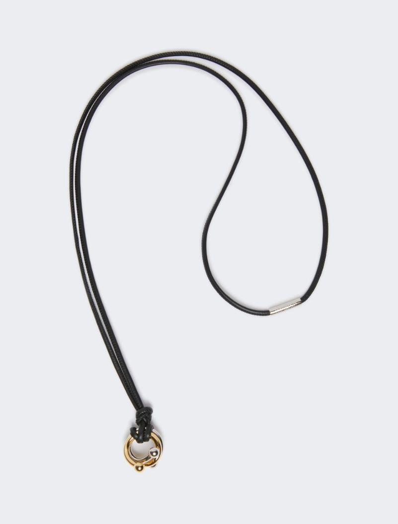Necklace made with tubular leather, decorated with a double metal pendant, with a gold and silver finish. - Tubular leather necklace - Pendant element in metal with gold and silver finish Composition and Care Metal, cattle. Distributed by Max Mara S.r.l., registered office in Reggio Emilia (Italy), Via Giulia Maramotti 4, 42124