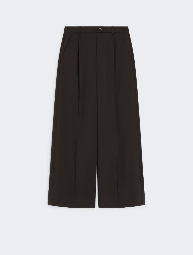 Oversize men’s-style trousers, made of natural stretch pure-wool. The wide volume and masculine construction on the closure add a sartorial, contemporary note to the design. - Oversize trousers in natural stretch pure wool canvas. - Oversize fit with wide leg and low rise - Asymmetric button fastening. - Trouser pleats at the waist and leg - Slant side pockets and back welt pockets. - Regular fit Composition and Care 100% virgin wool. Do not wash; do not bleach; do not tumble dry; cool iron; professionally dry clean perchloroethylene - mild process; do not wet clean.; put this item into a string bag before washing it.; wash the garment while it is fastened. Distributed by Max Mara S.r.l., registered office in Reggio Emilia (Italy), Via Giulia Maramotti 4, 42124
