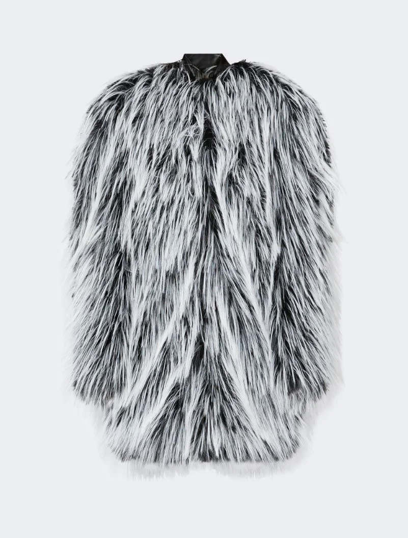 This jacket in furry-look fabric is set apart by its oversized fit, bold two-tone design and coated fabric details. Jewellery-style metallic hook-and-eye fastening. - Jacket in two-tone furry-look fabric with satin lining - Oversized fit - Band collar and a metal hook-and-eye fastening - Contrasting-colour details - Welt side pockets with a coated fabric trim - Regular fit Composition and Care Jersey fabric 1 100% polyester; jersey fabric 2 100% polyester; lining 95% polyester, 5% elastane; - exclusive of coating. Do not wash; do not bleach; do not tumble dry; do not iron; professionally dry clean perchloroethylene - mild process; do not wet clean. Distributed by Max Mara S.r.l., registered office in Reggio Emilia (Italy), Via Giulia Maramotti 4, 42124