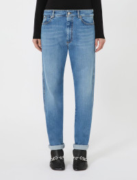 With its soft lines, the boyfriend jeans redefine a new concept of femininity. The low waist and crotch, the turned-up hem, and the personalized details on buttons, rivets, and label make them a must-have for everyday looks. - Authentic indigo stretch denim jeans with medium vintage and dark used garment treatment - Boyfriend cut with perfect construction - Low waist and crotch - Contrasting topstitching - Turned-up hem - Regular fit Composition and Care 99% cotton, 1% elastane. Machine wash cold delicate cycle; do not bleach; do not tumble dry; line drying in the shade; cool iron; do not dry clean.; do not iron the buttons.; take care when wearing light-coloured clothes or accessories because, with the heat of the body, the indigo fabric , may fade and stain. be careful while sitting on light coloured surfaces, especially if wet. wash garments separately and always turned inside out. hang the garment turned inside out by avoiding to expose it to direct sunlight. avoid removing isolated stains.; contains non-textile parts of animal origin. Distributed by Max Mara S.r.l., registered office in Reggio Emilia (Italy), Via Giulia Maramotti 4, 42124